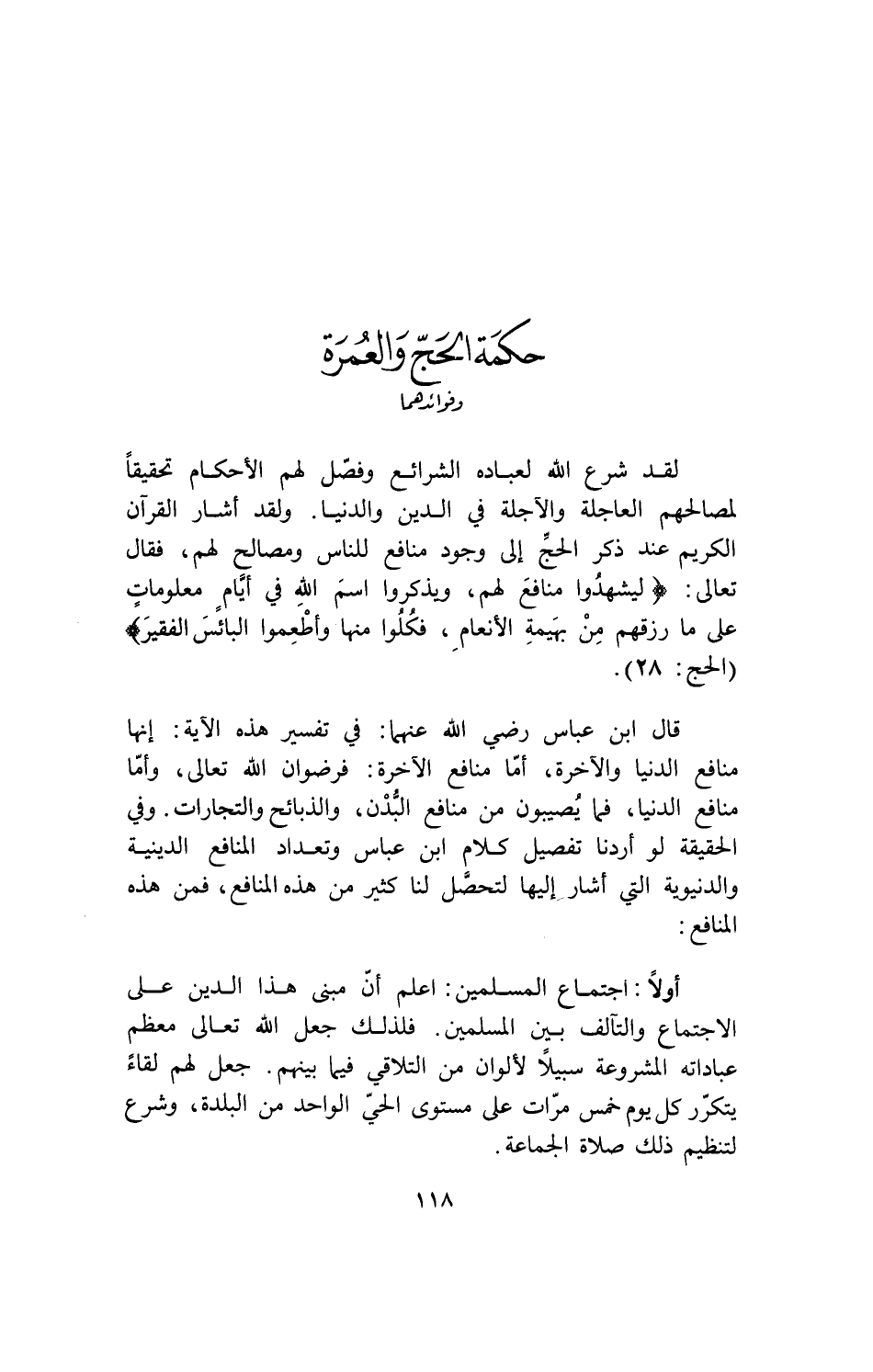 لقد شرع الله لعبادة الشرائع وفصل لهم الأحكام تحقيقاً لمصالحهم العاجلة والآجلة في الدين والدنيا. ولقد أشار القرآن الكريم عند ذكر الحج إلى وجود منافع للناس ومصالح لهم، فقال تعالى: {ِيَشْهَدُوا مَنَافِعَ لَهُمْ وَيَذْكُرُوا اسْمَ اللَّهِ فِي أَيَّامٍ مَّعْلُومَاتٍ عَلَى مَا رَزَقَهُم مِّن بَهِيمَةِ الْأَنْعَامِ فَكُلُوا مِنْهَا وَأَطْعِمُوا الْبَائِسَ الْفَقِيرَ} (الحج: 28).