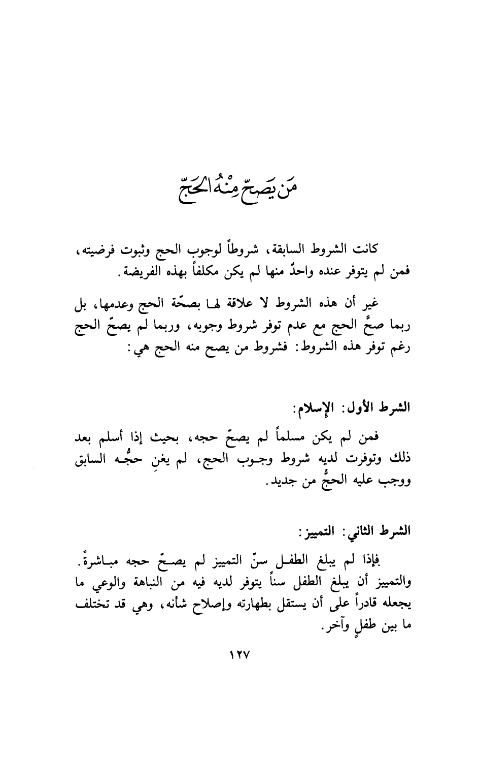 فمن لم يكن مسلماً لم يصح حجه، بحيث إذا أسلم بعد ذلك وتوفرت لديه شروط الحج، لم يغن حجه السابق ووجب عليه الحج من جديد.