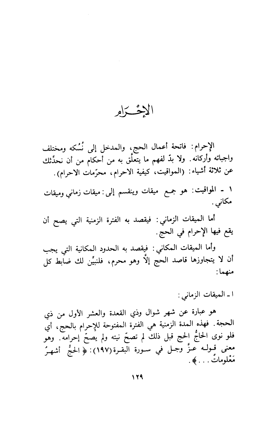 الإحرام: فاتحة أعمال الحج، والمدخل إلى نسكه ومختلف واجباته وأركانه. ولابد لفهم ما يتعلق به من أحكام من أن نحدثك عن ثلاثة أشياء: (المواقيت، كيفية الإحرام، محرمات الإحرام).