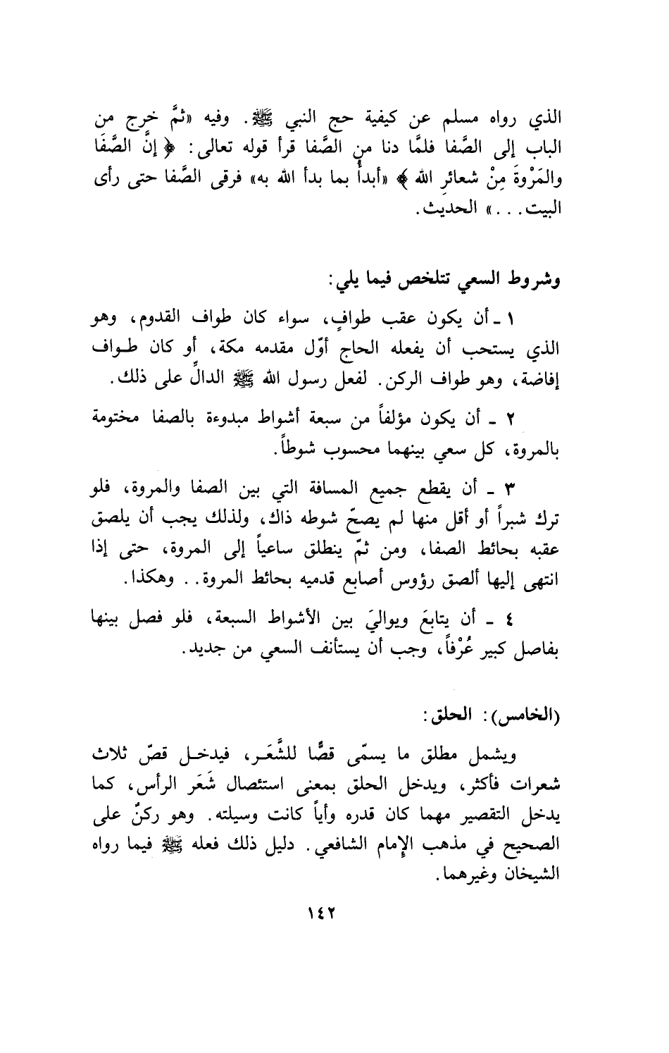 3ـ أن يقطع جميع المسافة التي بين الصفا والمروة، فلو ترك شبراً أو أقل منها لم يصح شوطه ذاك، ولذلك يجب أن يلصق عقبه بحائط الصفا، ومن ثم ينطق ساعياً إلى المروة، حتى إذا انتهى إليها ألصق رؤوس أصابع قدميه بحائط المروة ... . وهكذا.