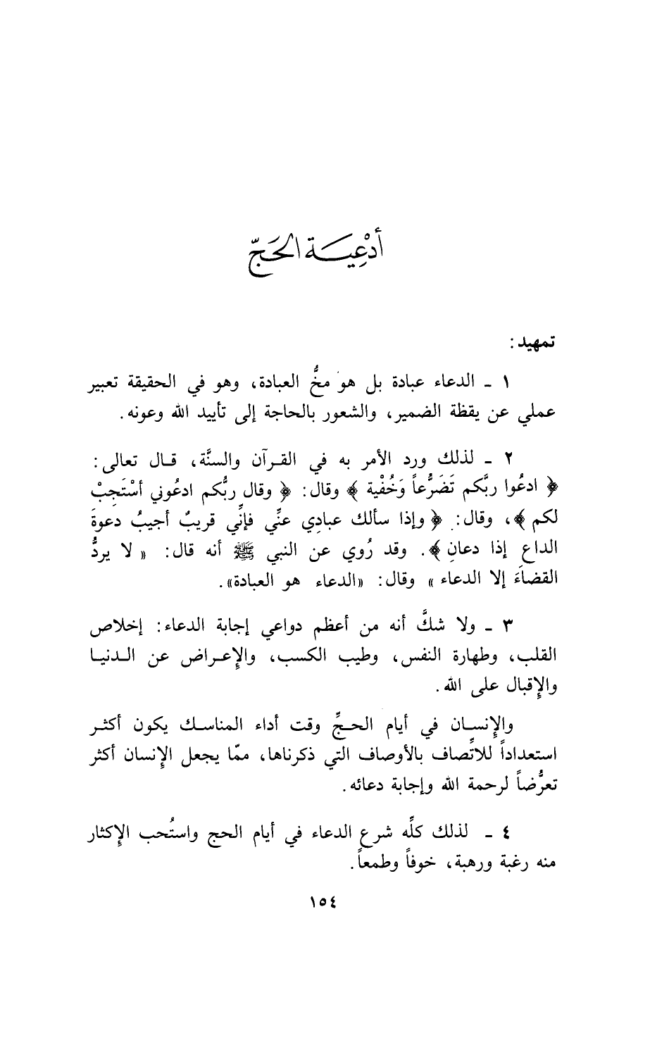 4ـ لذلك كله شرع الدعاء في أيام الحج واستحب الإكثار منه رغبة ورهبة خوفاً وطمعاً.