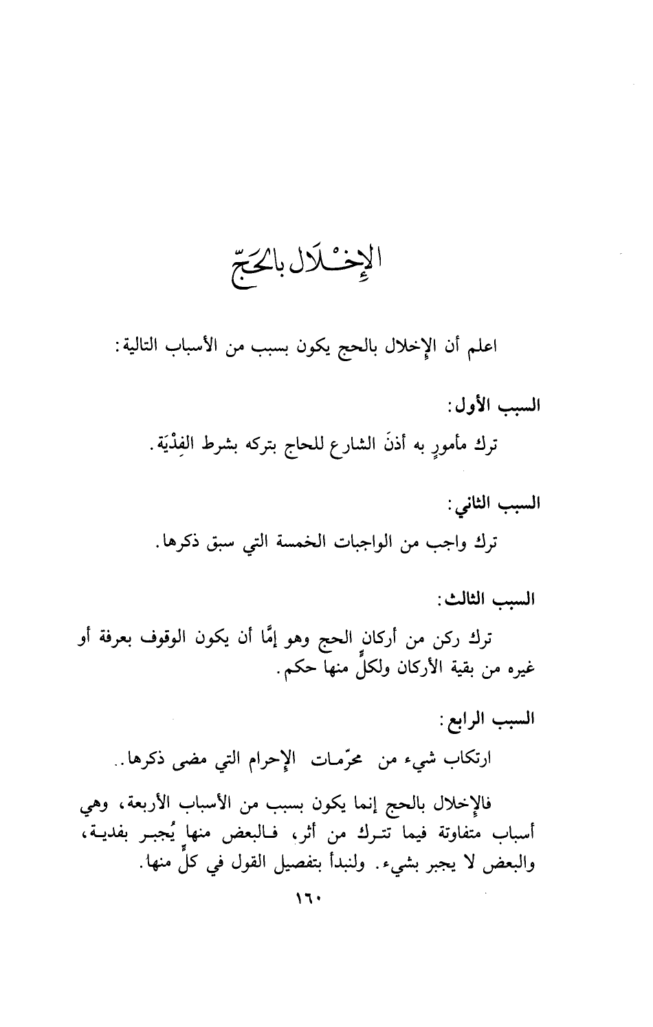 فالإخلال بالحج إنما يكون بسبب من الأسباب الأربعة، وهي أسباب متفاوتة فيما تترك من أثر، فالبعض منها يجبر بفدية، والبعض لا يجبر بشيء. ولنبدأ بتفصيل القول في كل منها.