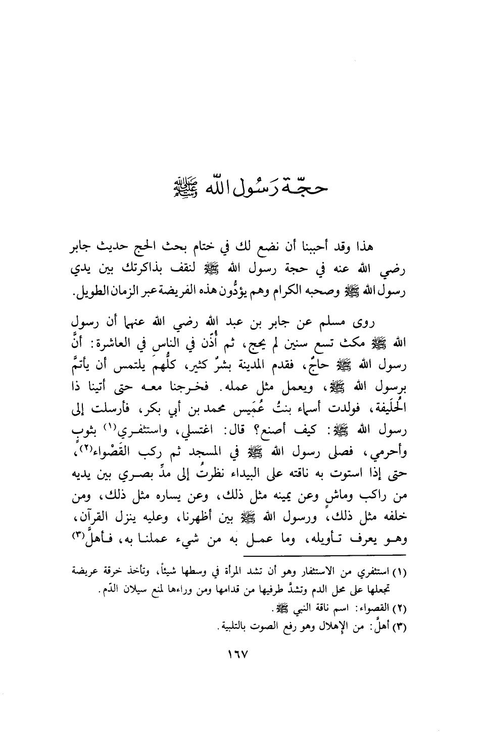 هذا وقد أحببنا أن نضع لك في ختام بحث الحج حديث جابر - رضي الله عنه - في حجة رسول الله - صلى الله عليه وسلم - لنقف بذاكرتك بين يدي رسول الله - صلى الله عليه وسلم - وصحبه الكرام وهم يؤدون هذه الفريضة عبر الزمان الطويل.