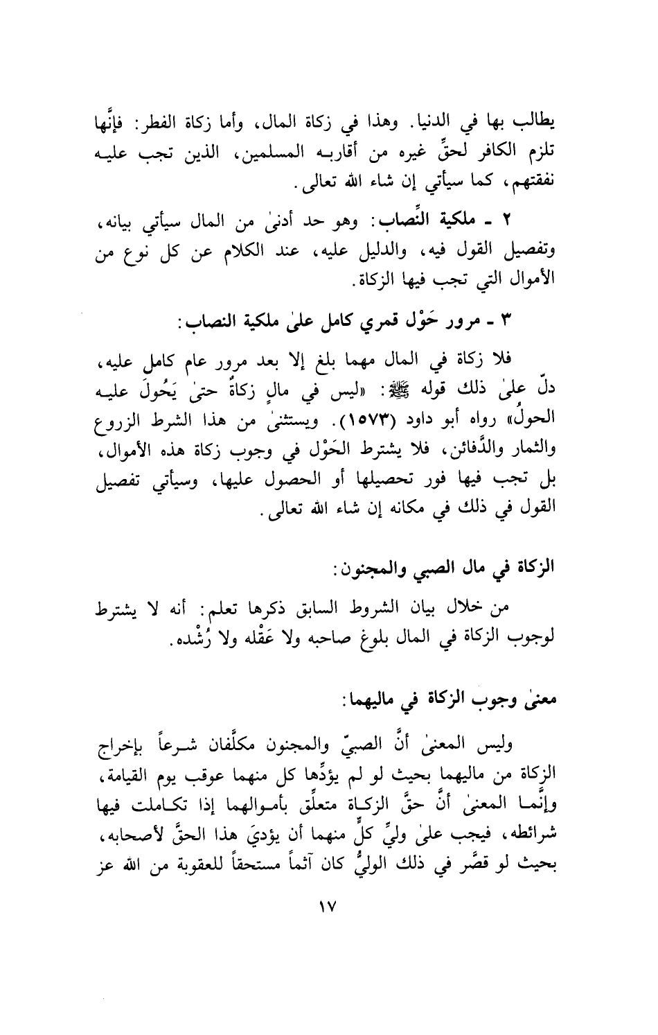 وليس المعنى أن الصبي والمجنون مكلفان شرعاً بإخراج الزكاة من ماليهما بحيث لو لم يؤدها كل منهما عوقب يوم القيام، وإنما المعنى أن حق الزكاة متعلق بأموالهما إذا تكاملت فيها شرائطه، فيجب على ولي كل منهما أن يؤدي هذا الحق لأصحابه، بحيث لو قصر في ذلك الولي كان آثماً مستحقاً للعقوبة من الله عز