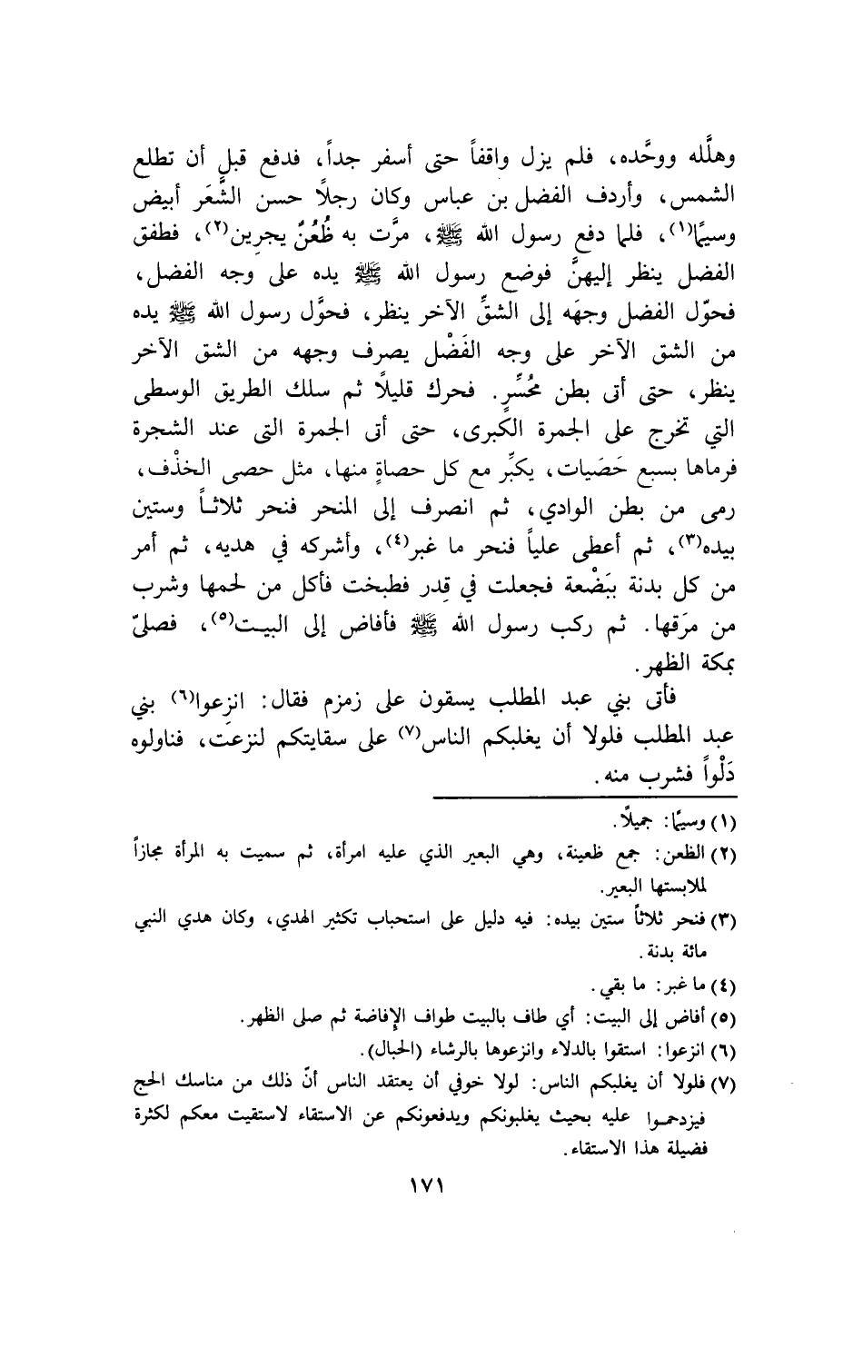 (¬7) فلولا أن يغلبكم الناس: لولا خوفي أن يعتقد الناس أن ذلك من مناسك الحج فيزدحموا عليه بحيث يغلبونكم ويدفعونكم عن الاستقاء لاستقيت معكم لكثرة فضيلة هذا الاستقاء.