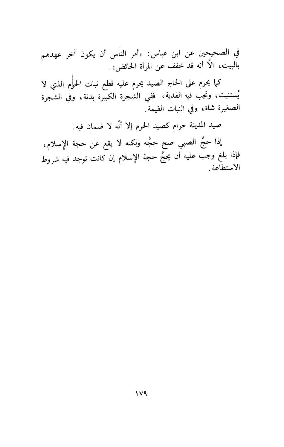 كما يحرم على الحاج الصيد يحرم عليه قطع نبات الحرم الذي لا يستنبت، وتجب فيه الفدية، ففي الشجرة الكبيرة بدنة، وفي الشجرة الصغيرة شاة، وفي النبات القيمة.
