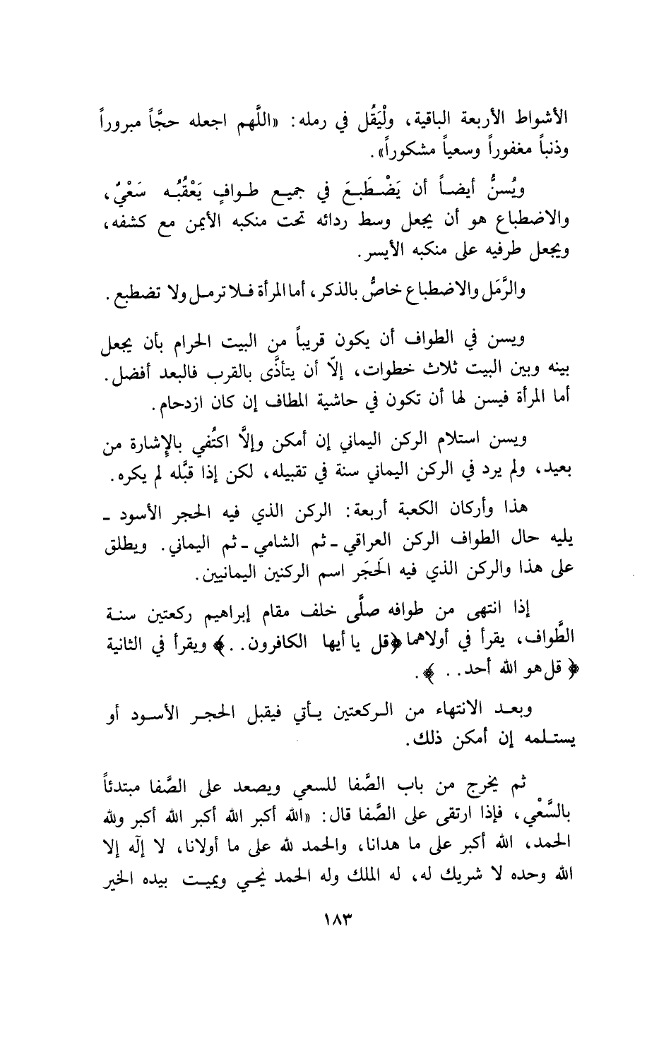 ثم يخرج من باب الصفا للسعي ويصعد على الصفا مبتدئاً بالسعي، فإذا ارتقى على الصفا قال: "الله أكبر الله أكبر الله اكبر ولله الحمد، الله أكبر على ما هدانا، والحمد لله على ما أولاناً، لا إله إلا الله وحده لا شريك له، له الملك وله الحمد يحي ويميت بيده الخير