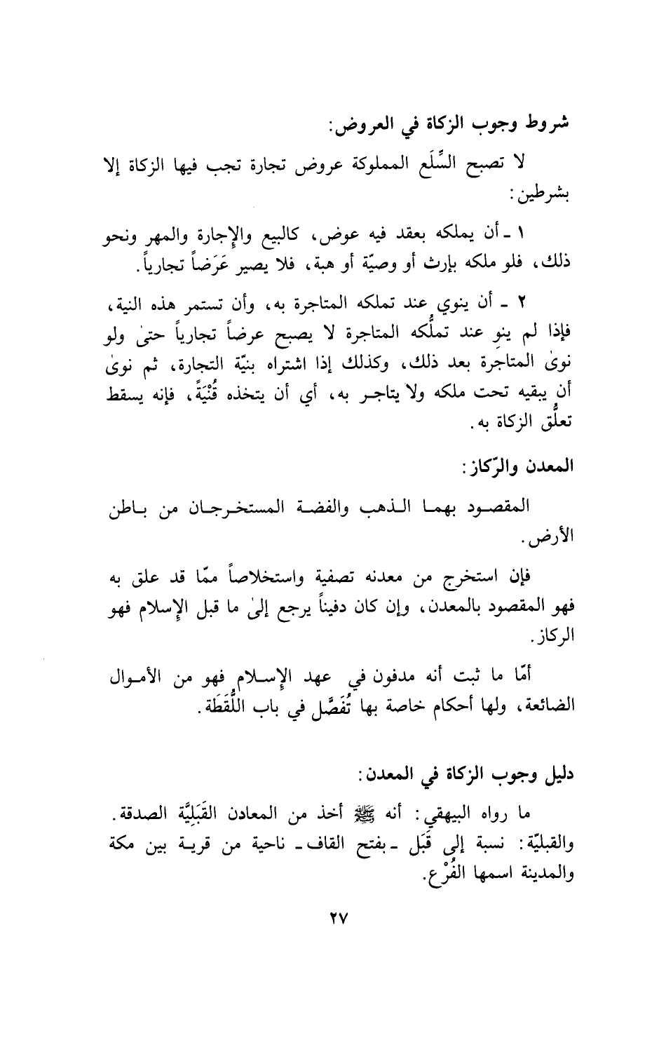 لا تصبح السلع المملوكة عروض تجارة تجب فيها الزكاة إلا بشرطين:
