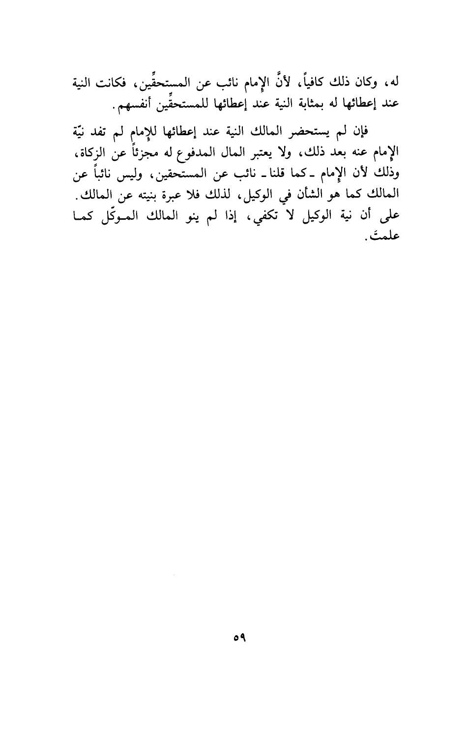 فإن لم يستحضر المالك النية عند إعطائها للإمام لم تفد نية الإمام عنه بعد ذلك، ولا يعتبر المال المدفوع له مجزئاً عن الزكاة، وذلك لأن الإمام ـ كما قلنا ـ نائب عن المستحقين، وليس نائباً عن المالك كما هو الشأن في الوكيل، لذلك فلا عبرة بنيته عن المالك. على أن نية الوكيل لا تكفي، إذا لم ينو المالك الموكل كما علمت.