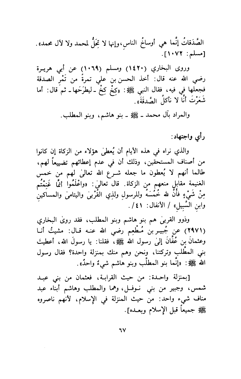{َاعْلَمُواْ أَنَّمَا غَنِمْتُم مِّن شَيْءٍ فَأَنَّ لِلّهِ خُمُسَهُ وَلِلرَّسُولِ وَلِذِي الْقُرْبَى وَالْيَتَامَى وَالْمَسَاكِينِ وَابْنِ السَّبِيلِ} الأنفال: 41