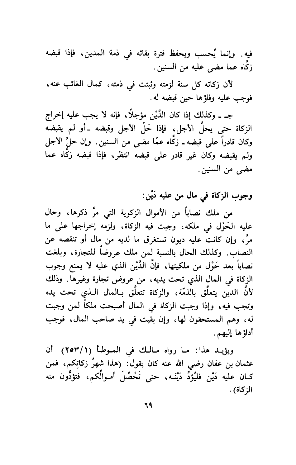 ج-كذلك إذا كان الدين مؤجلاً، فإنه لا يجب عليه إخراج الزكاة حتى يحل الأجل، فإذا حل الأجل وقبضه ـ أو لم يقبضه وكان قادراً على قبضه ـ زكاه عما مضى من السنين. وإن حل الأجل ولم يقبضه وكان غير قادر على قبضه انتظر، فإذا قبضه زكاه عما مضى من السنين.