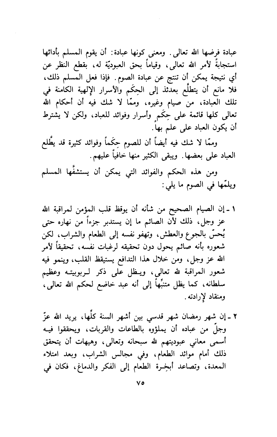 ومما لا شك فيه أيضاً أن للصوم حكماً وفوائد كثيرة قد يطلع العباد على بعضها. ويبقى الكثير منها خافياً عليهم.
