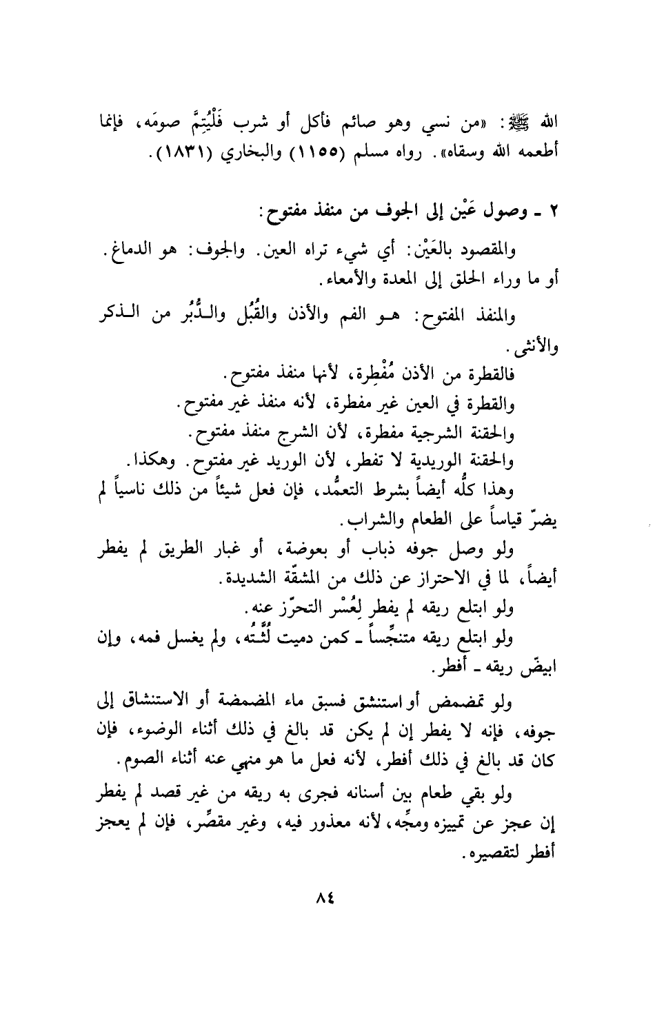 2ـ وصول عين إلى الجوف من منفذ مفتوح: