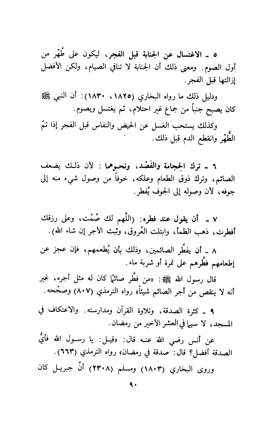 وكذلك يستحب الغسل عن الحيض والنفاس قبل الفجر إذا تم الطهر ونقطع الدم قبل ذلك.