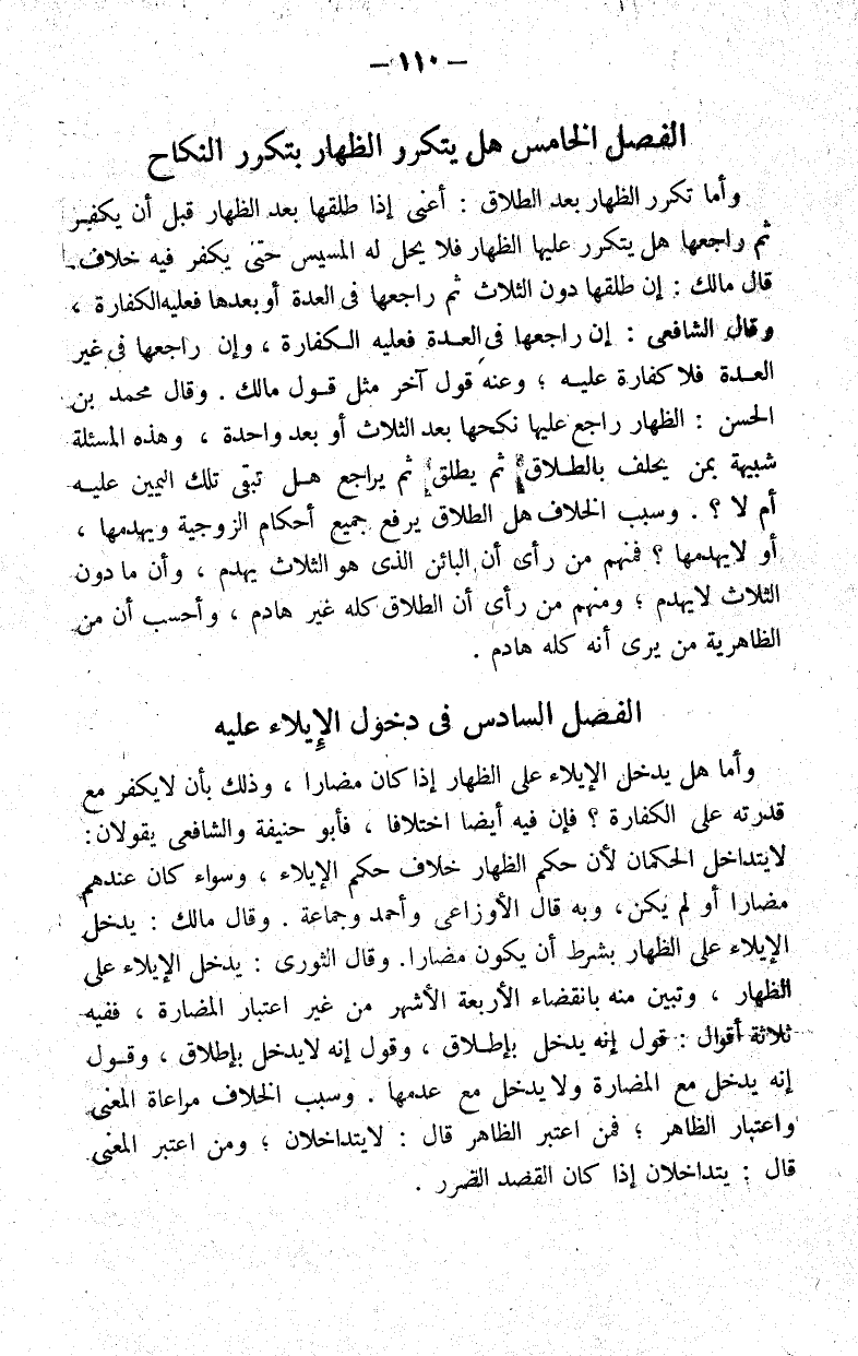 الفصل الخامس هل يتكرر الظهار بتكرر النكاح