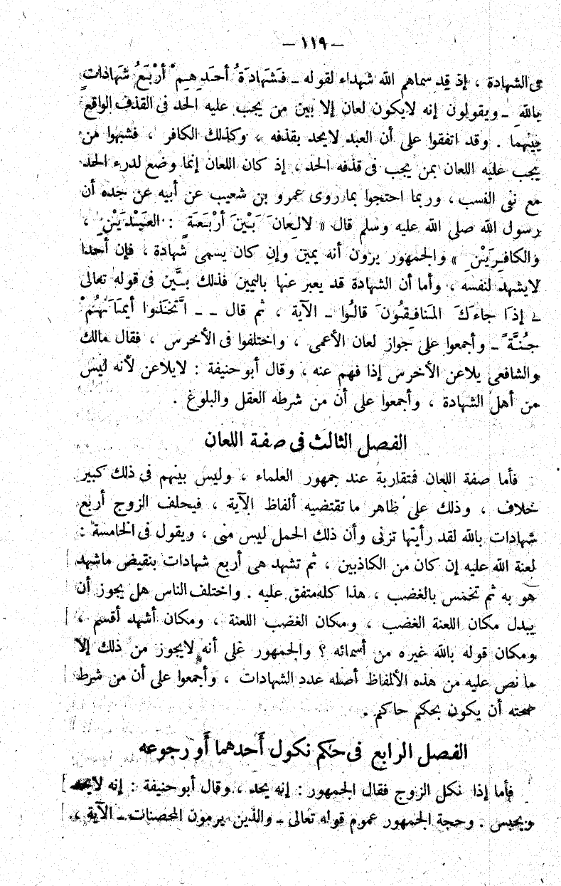 وربما احتجوا بما روى عمرو بن شعيب عن أبيه عن جده أن رسول الله صلى الله عليه وسلم قال: " لا لعان بين أربعة العبدين والكافرين" والجمهور يرون أنه يمين وإن كان يسمى شهادة فإن أحدا لا يشهد لنفسه وأما أن الشهادة قد يعبر عنها باليمين فذلك بين في قوله تعالى :{إِذَا جَاءَكَ الْمُنَافِقُونَ قَالُوا} الآية ثم قال :{ اتَّخَذُوا أَيْمَانَهُمْ جُنَّةً}.