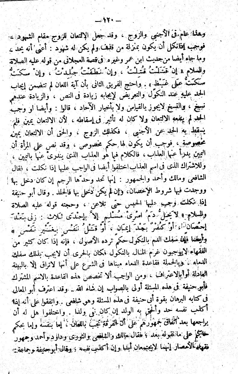 واحتج الفريق الثاني بأن آية اللعان لم تتضمن إيجاب الحد عليه عند النكول والتعريض لإيجابه زيادة في النص والزيادة عندهم نسخ والنسخ لا يجوز بالقياس ولا بأخبار الآحاد قالوا وأيضا لو وجب الحد لم ينفعه الالتعان ولا كان له تأثير في إسقاطه لأن الالتعان يمين فلم يسقط به الحد عن الأجنبي فكذلك الزوج.
