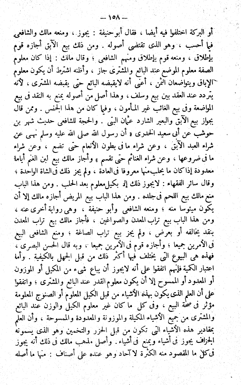 أو البركة اختلفوا فيه أيضا فقال أبو حنيفة يجوز ومنعه مالك والشافعي فيما أحسب وهو الذي تقتضي أصوله.