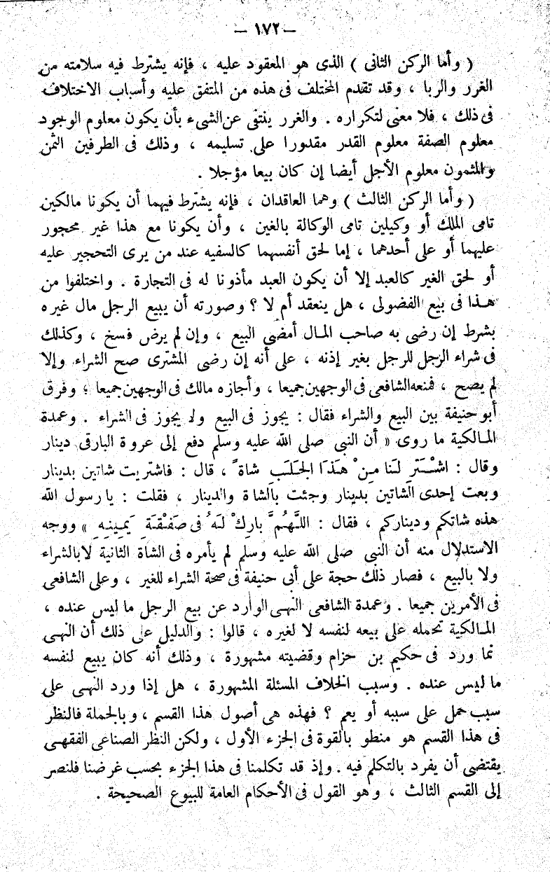 (وأما الركن الثاني) الذي هو المعقود عليه فإنه يشترط فيه سلامته من الغرر والربا وقد تقدم المختلف في هذه من المتفق عليه وأسباب الاختلاف في ذلك فلا معنى لتكراره.