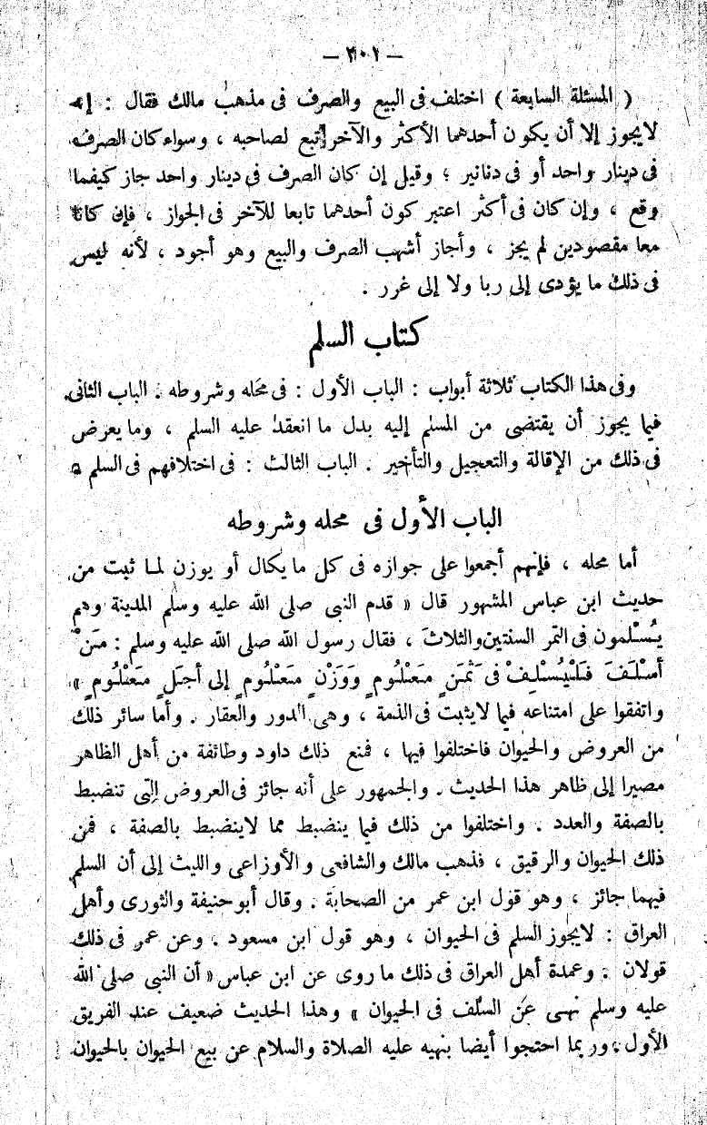 والحيوان فاختلفوا فيها فمنع ذلك داود وطائفة من أهل الظاهر مصيرا إلى ظاهر هذا الحديث.