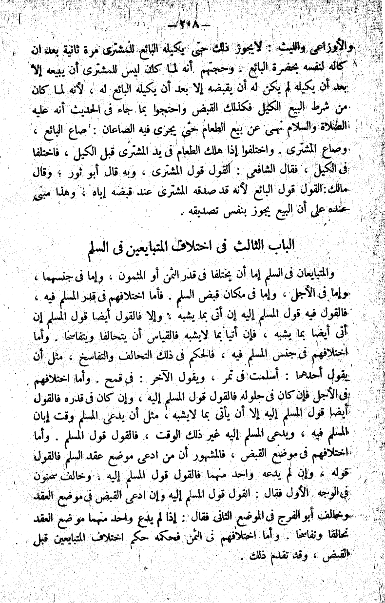 الباب الثالث في اختلاف المتبايعين في السلم