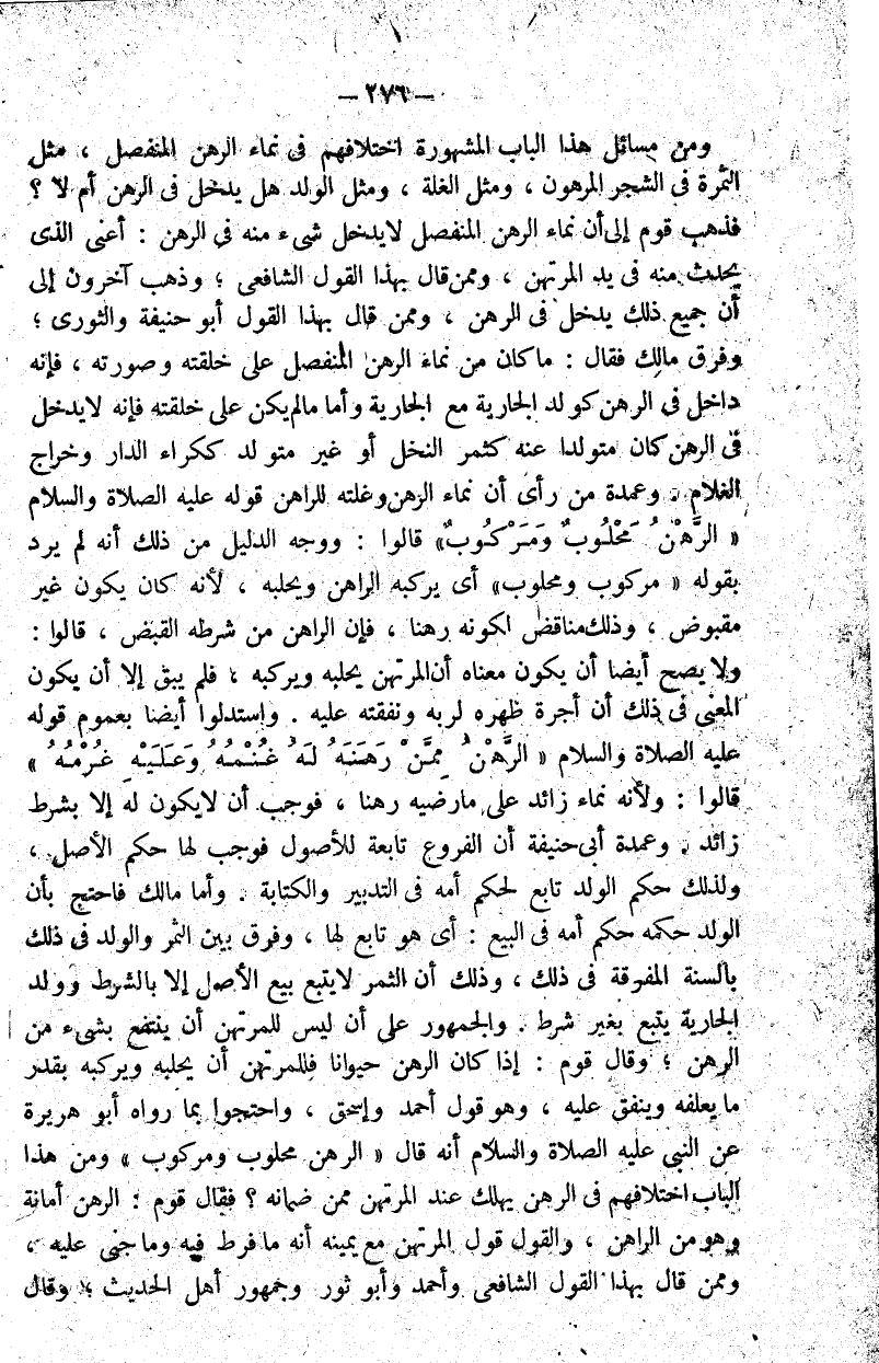 ومن مسائل هذا الباب المشهورة اختلافهم في نماء الرهن المنفصل مثل الثمرة في الشجر المرهون ومثل الغلة ومثل الولد هل يدخل في الرهن أم لا فذهب قوم إلى أن نماء الرهن المنفصل لا يدخل شيء منه في الرهن أعني الذي يحدث منه في يد المرتهن وممن قال بهذا القول الشافعي وذهب آخرون إلى أن جميع ذلك يدخل في الرهن وممن قال بهذا القول أبو حنيفة والثوري وفرق مالك فقال ما كان من نماء الرهن المنفصل على خلقته وصورته فإنه داخل في الرهن كولد الجارية مع الجارية وأما ما لم يكن على خلقته فإنه لا يدخل في الرهن كان متولدا عنه كثمر النخل أو غير متولد ككراء الدار وخراج الغلام.