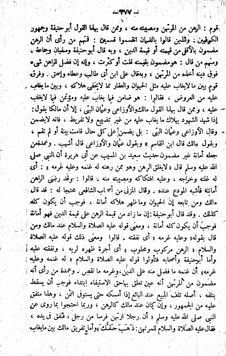 قوم الرهن من المرتهن ومصيبته منه وممن قال بهذا القول أبو حنيفة وجمهور الكوفيين.