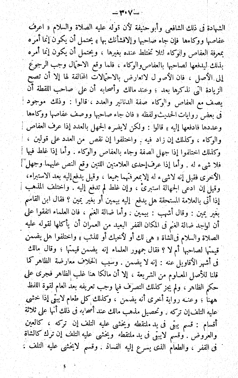 فإن العلماء اتفقوا على أن لواجد ضالة الغنم في المكان القفر البعيد من العمران أن يأكلها لقوله عليه الصلاة والسلام في الشاة: "هي لك أو لأخيك أو للذئب" واختلفوا هل يضمن قيمتها لصاحبها أم لا فقال جمهور العلماء إنه يضمن قيمتها وقال مالك في أشهر الأقاويل عنه إنه لا يضمن.