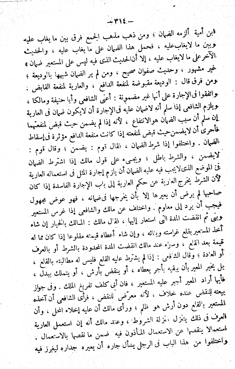 بن أمية ألزمه الضمان ومن ذهب مذهب الجمع فرق بين ما يغاب عليه وبين ما لا يغاب عليه فحمل هذا الضمان على ما يغاب عليه والحديث الآخر على ما لا يغاب عليه إلا أن الحديث الذي فيه "ليس على المستعير ضمان" غير مشهور وحديث صفوان صحيح ومن لم ير الضمان شبهها بالوديعة ومن فرق قال الوديعة مقبوضة لمنفعة الدافع والعارية لمنفعة القابض.