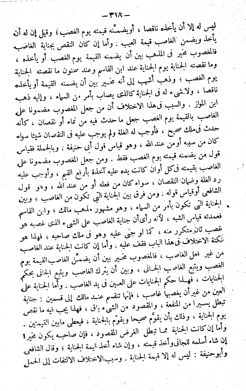 بأمر من السماء وهو مشهور مذهب مالك وابن القاسم فعمدته قياس الشبه لأنه رأى أن جناية الغاصب على الشيء الذي غصبه هو غصب ثان متكرر منه كما لو جنى عليه وهو في ملك صاحبه فهذا هو نكتة الاختلاف في هذا الباب فقف عليه.