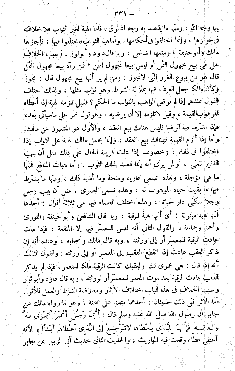 أما الأثر ففي ذلك حديثان أحدهما متفق على صحته وهو ما رواه مالك عن جابر أن رسول الله صلى الله عليه وسلم قال :" أيما رجل أعمر عمرى له ولعقبه فإنها للذي يعطاها لا ترجع إلى الذي أعطاها أبدا" لأنه أعطى عطاء وقعت فيه المواريث.