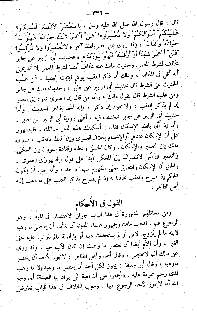 والحق أن الإسكان والتعمير معنى مفهوم منهما واحد وأنه يجب أن يكون الحكم إذا صرح بالعقب مخالفا له إذا لم يصرح بذكر العقب على ما ذهب إليه أهل الظاهر.