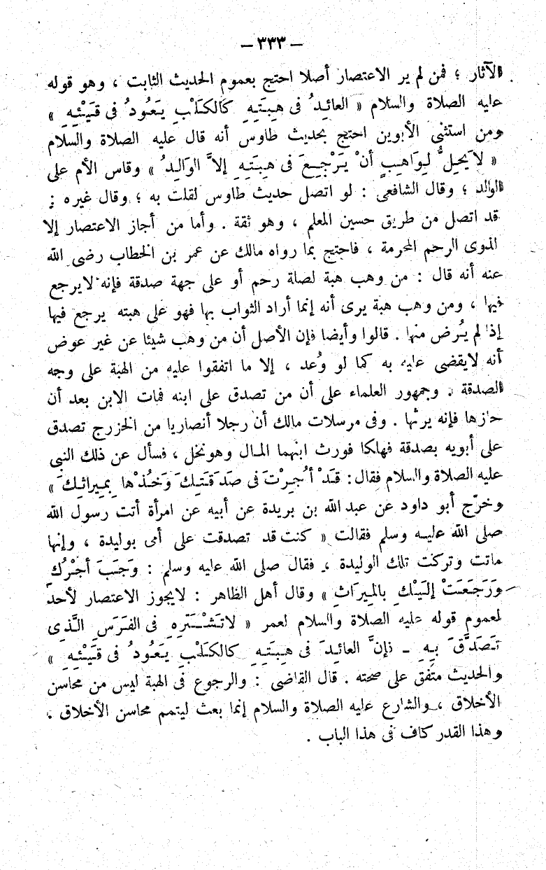 قال القاضي والرجوع في الهبة ليس من محاسن الأخلاق والشارع عليه الصلاة والسلام إنما بعث ليتمم محاسن الأخلاق وهذا القدر كاف في هذا الباب.