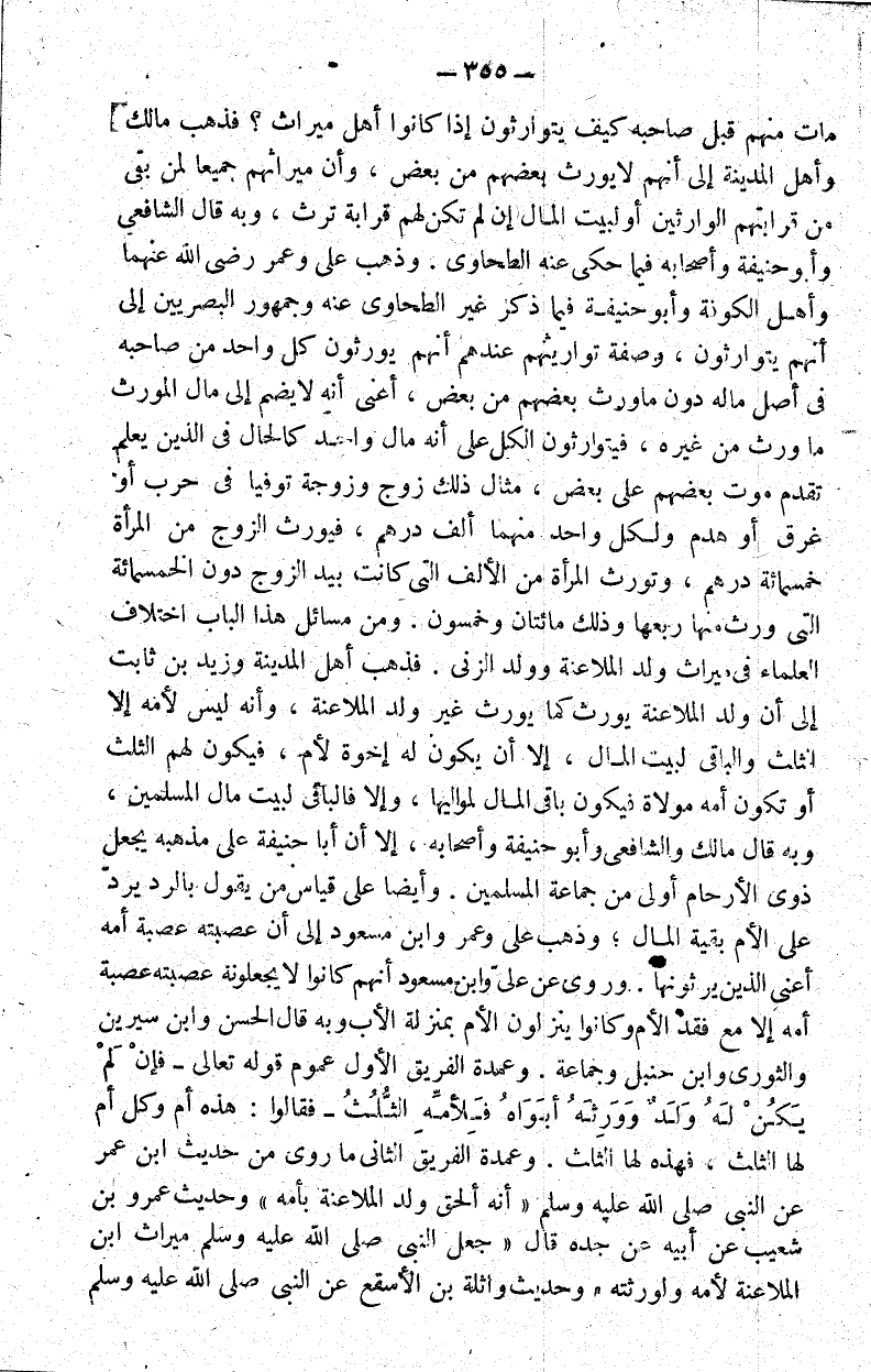 ومن مسائل هذا الباب اختلاف العلماء في ميراث ولد الملاعنة وولد الزنا فذهب أهل المدينة و زيد بن ثابت إلى أن ولد الملاعنة يورث كما يورث غير ولد الملاعنة وأنه ليس لأمه إلا الثلث والباقي لبيت المال إلا أن يكون له إخوة لأم فيكون لهم الثلث أو تكون أمه مولاة فيكون باقي المال لمواليها وإلا فالباقى لبيت مال المسلمين وبه قال مالك والشافعي وأبو حنيفة وأصحابه إلا أن أبا حنيفة على مذهبه يجعل ذوي الأرحام أولى من جماعة المسلمين.