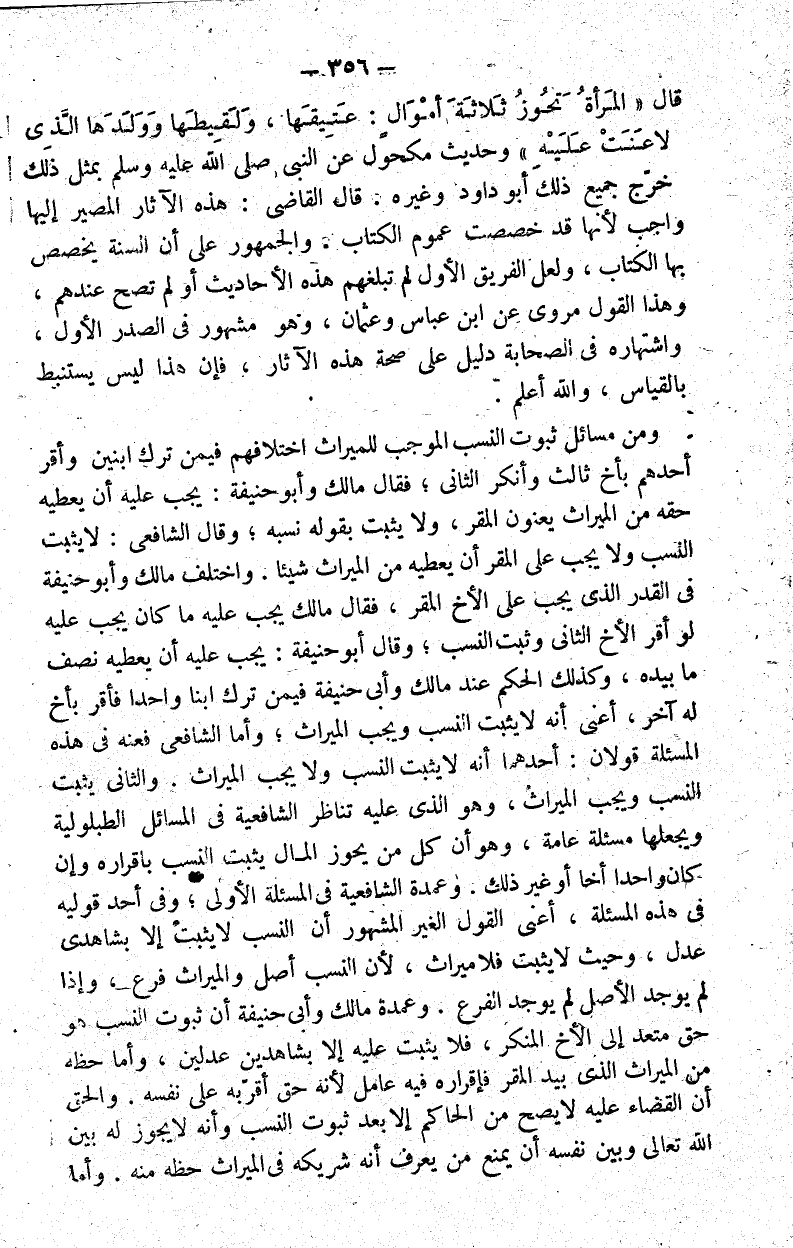 وعمدة الشافعية في المسألة الأولى وفي أحد قوليه في هذه المسألة أعني القول الغير المشهور أن النسب لا يثبت إلا بشاهدي عدل وحيث لا يثبت فلا ميراث لأن النسب أصل والميراث فرع وإذا لم يوجد الأصل لم يوجد الفرع.