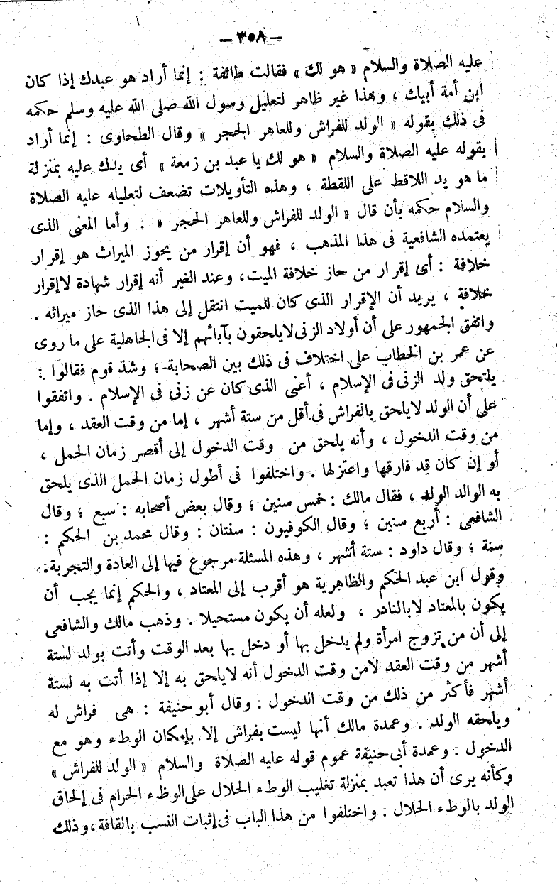 عليه الصلاة والسلام "هو لك" فقال طائفة إنما أراد هو عبدك إذ كان ابن أمة أبيك ظاهر لتعليل رسول الله صلى الله عليه وسلم حكمه في ذلك بقوله "الولد للفراش وللعاهر الحجر" وقال الطحاوي إنما أراد بقوله عليه الصلاة والسلام "هو لك ياعبد بن زمعة" أي يدك عليه بمنزلة ما هو يد اللاقط على اللقطة وهذه التأويلات تضعف لتعليله عليه الصلاة والسلام حكمه بأن قال "الولد للفراش وللعاهر الحجر".