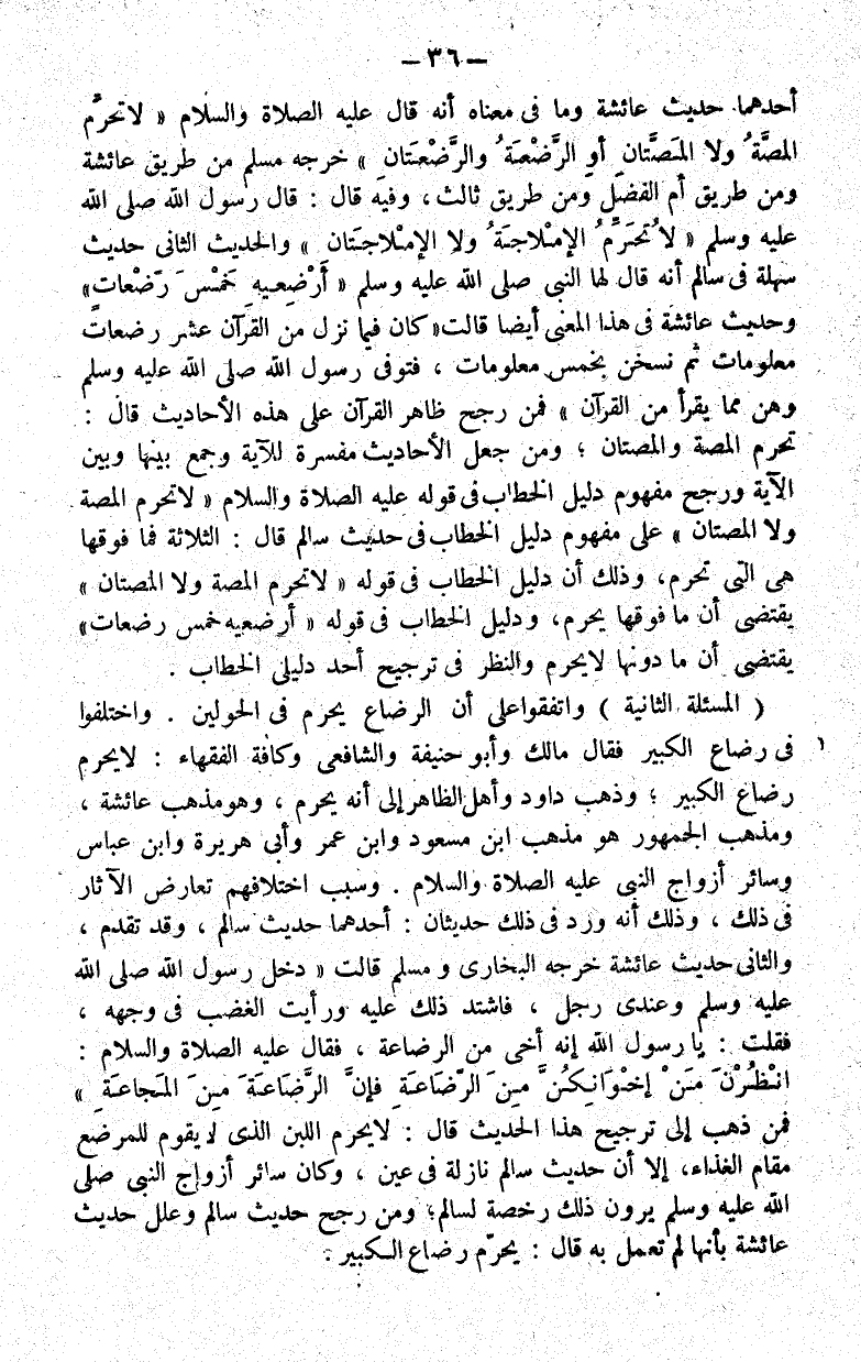واختلفوا في رضاع الكبير فقال مالك وأبو حنيفة والشافعي وكافة الفقهاء: لا يحرم رضاع الكبير وذهب داود وأهل الظاهر إلى أنه يحرم وهو مذهب عائشة ومذهب الجمهور هو مذهب ابن مسعود وابن عمر وأبي هريرة وابن عباس وسائر أزواج النبي عليه الصلاة والسلام.