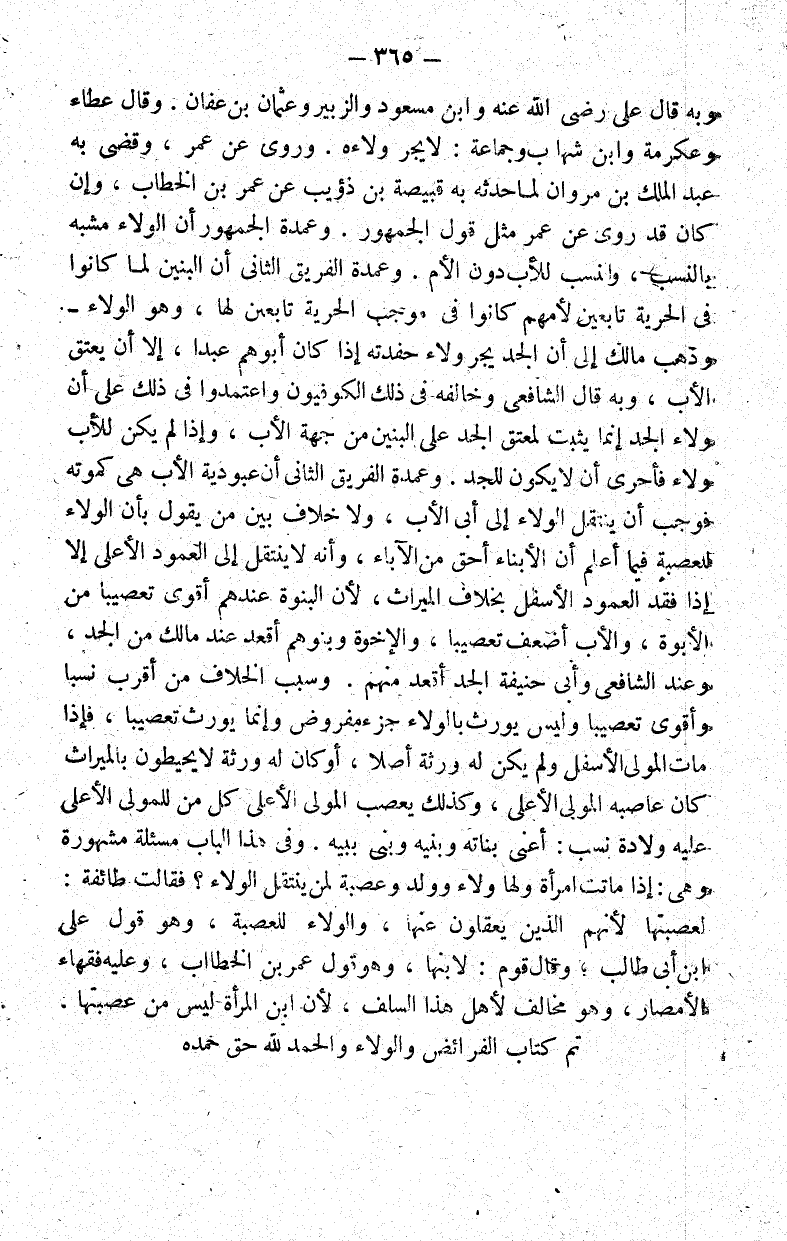 تم كتاب الفرائض والولاء والحمد لله حق حمده.