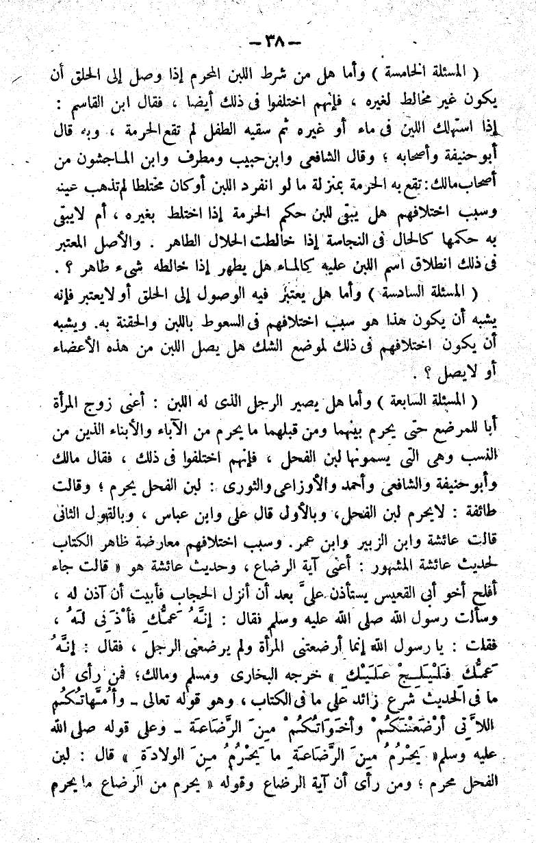 فمن رأى أن ما في الحديث شرع زائد على ما في الكتاب وهو قوله تعالى :{وَأُمَّهَاتُكُمُ اللَّاتِي أَرْضَعْنَكُمْ وَأَخَوَاتُكُمْ مِنَ الرَّضَاعَةِ} وعلى قوله صلى الله عليه وسلم " يحرم من الرضاعة ما يحرم من الولادة " قال: لبن الفحل محرم ومن رأى أن آية الرضاع وقوله " يحرم من الرضاع ما يحرم