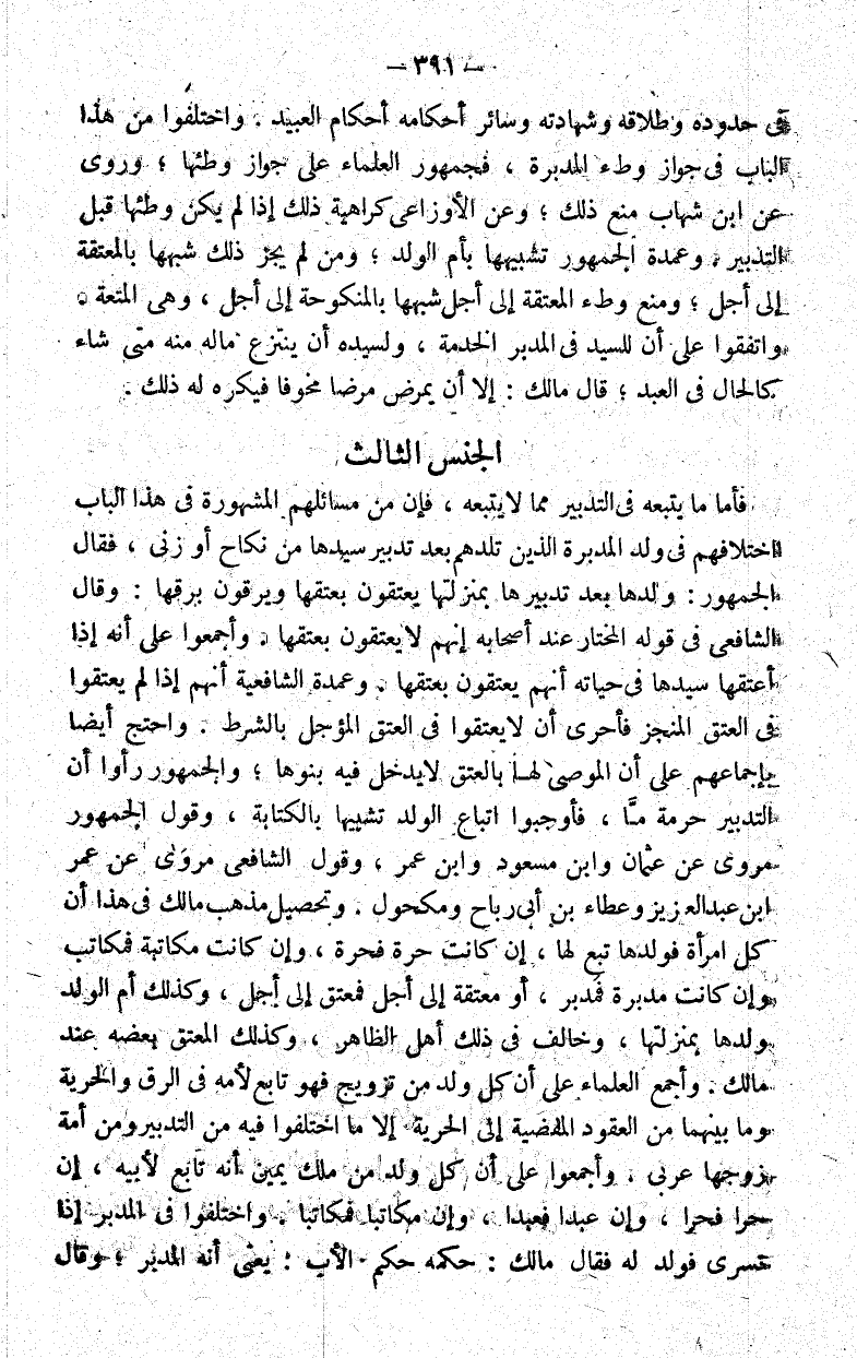 وتحصيل مذهب مالك في هذا أن كل امرأة فولدها تبع لها إن كانت حرة فحر وإن كانت مكاتبة فمكاتب وإن كانت مدبرة فمدبر أو معتقة إلى أجل فمعتق إلى أجل وكذلك أم الولد ولدها بمنزلتها وخالف في ذلك أهل الظاهر وكذلك المعتق بعضه عند مالك وأجمع العلماء على أن كل ولد من تزويج فهو تابع لأمه في الرق والحرية وما بينهما من العقود المفضية إلى الحرية إلا ما اختلفوا فيه من التدبير ومن أمة زوجها عربي.