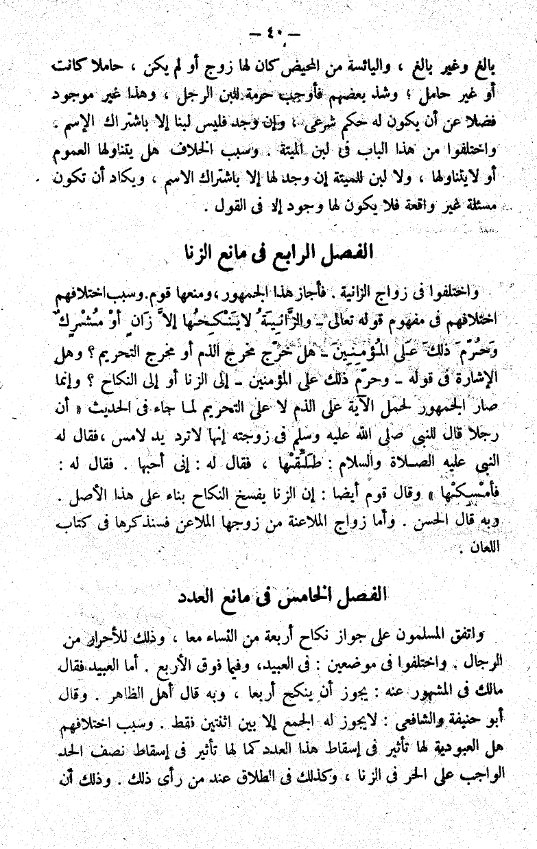 واختلفوا في موضعين: في العبيد وفيما فوق الأربع.