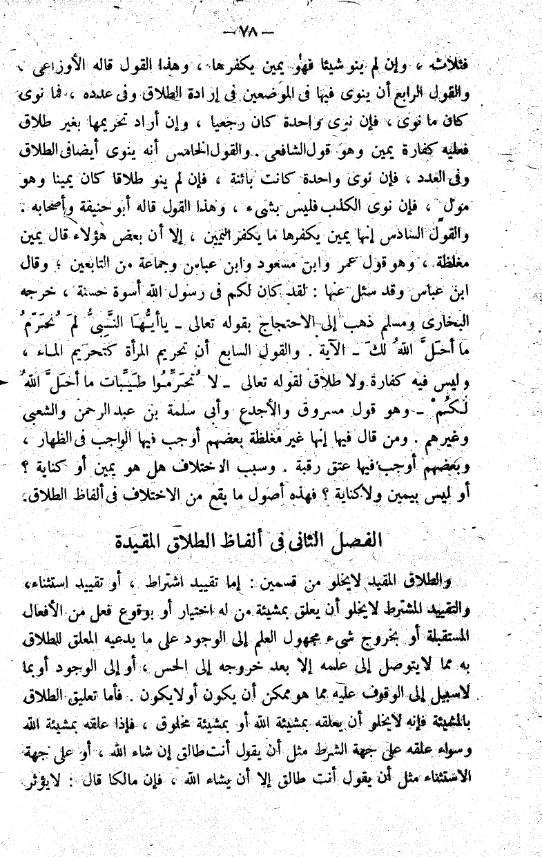 الفصل الثاني في ألفاظ الطلاق المقيدة