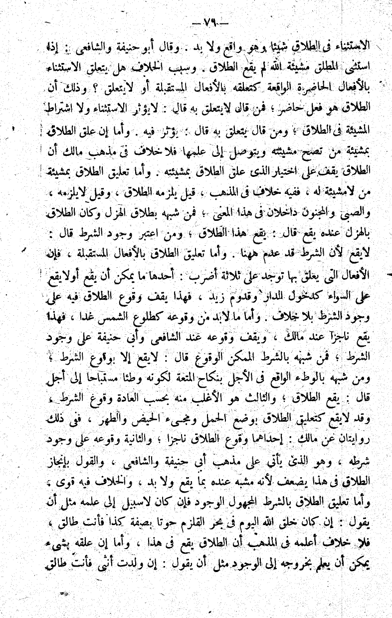 هل يتعلق الاستثناء بالأفعال الحاضرة الواقعة كتعلقه بالأفعال المستقبلة أو لا يتعلق وذلك أن الطلاق هو فعل حاضر فمن قال لا يتعلق به قال لا يؤثر الاستثناء ولا اشتراط المشيئة في الطلاق ومن قال يتعلق به قال يؤثر فيه وأما إن علق الطلاق بمشيئة من تصح مشيئته ويتوصل إلى علمها فلا خلاف في مذهب مالك أن الطلاق يقف على اختيار الذي علق الطلاق بمشيئته.