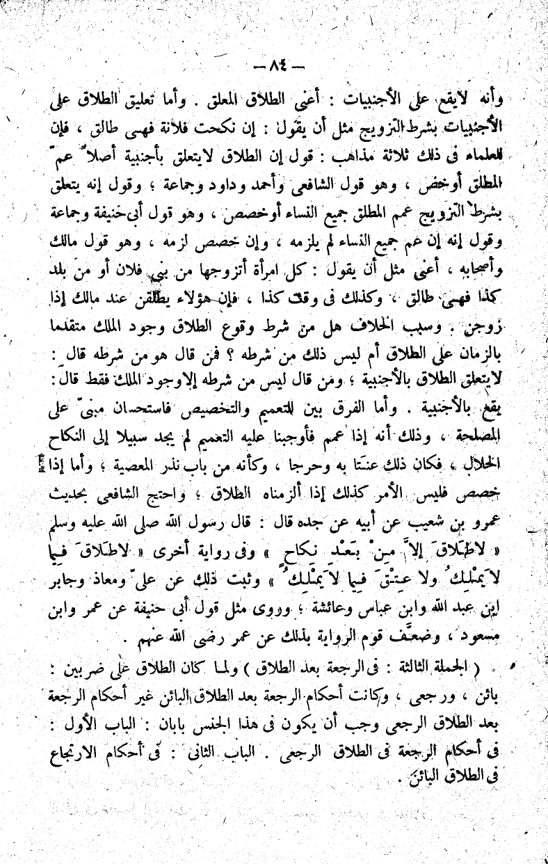 ولما كان الطلاق على ضربين بائن ورجعي وكانت أحكام الرجعة بعد الطلاق البائن غير أحكام الرجعة بعد الطلاق الرجعي وجب أن يكون في هذا الجنس بابان الباب الأول في أحكام الرجعة في الطلاق الرجعي.