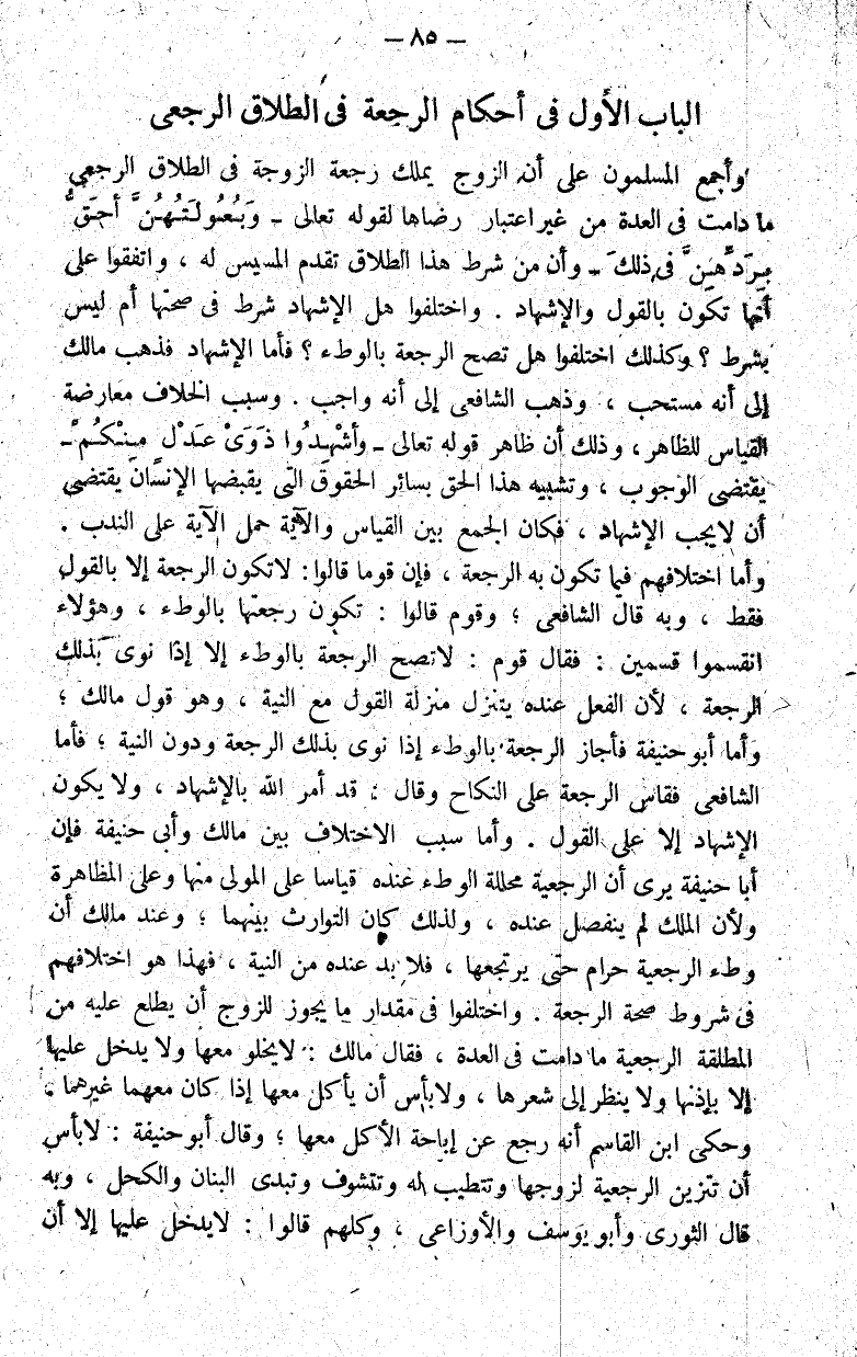 الباب الأول في أحكام الرجعة في الطلاق الرجعي