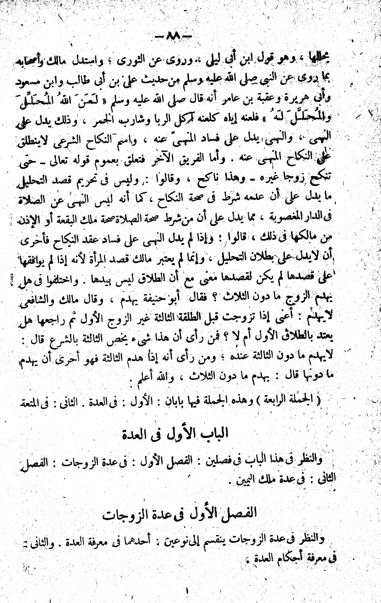 والنظر في هذا الباب في فصلين الفصل الأول في عدة الزوجات.