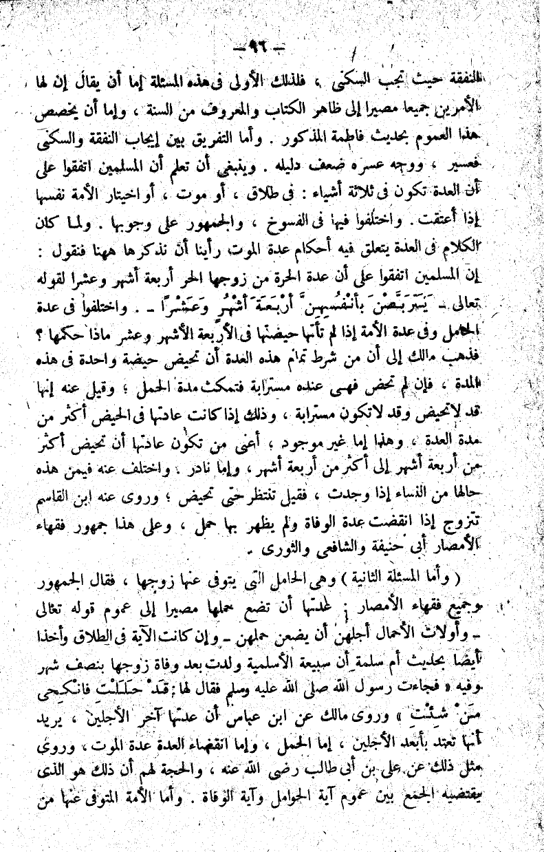 (وأما المسألة الثانية) وهي الحامل التي يتوفى عنها زوجها فقال الجمهور وجميع فقهاء الأمصار عدتها أن تضع حملها مصيرا إلى عموم قوله تعالى: {وَأُولاتُ الأَحْمَالِ أَجَلُهُنَّ أَنْ يَضَعْنَ حَمْلَهُنَّ} وإن كانت الآية في الطلاق وأخذا أيضا بحديث أم سلمة أن سبيعة الأسلمية ولدت بعد وفاة زوجها بنصف شهر وفيه "فجاءت رسول الله صلى الله عليه وسلم فقال لها: "قد حللت فانكحي من شئت " وروى مالك عن ابن عباس أن عدتها آخر الأجلين يريد أنها تعتد بأبعد الأجلين إما الحمل وإما انقضاء العدة عدة الموت وروي مثل ذلك عن علي بن أبي طالب رضي الله عنه والحجة لهم أن ذلك هو الذي يقتضيه الجمع بين عموم آية الحوامل وآية الوفاة.