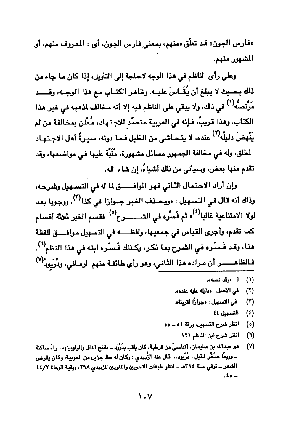وعلى رأى الناظم في هذا الوجه لا حاجة إلى التأويل، إذا كان ما جاء من ذلك بحيث لا يبلغ أن يُقَاسَ عليه. وظاهر الكتاب مع هذا الوجه، وقد مَرّ نصُّه في ذلك، ولا يبقي على الناظم فيه إلا أنه مخالف لمذهبه في غير هذا الكتاب. وهذا قريبٌ، فإنه في العربية متصد للاجتهاد، مُعْلعن بمخالفة من لم يَنْهضَ دليلُه عنده، لا يتحاشى من الخليل فما دونه، سيرةً أهل الاجتهاد المطلق، وله في مخالفة الجمهور مسائل مشهورة، مُنَبّه عليها في مواضعها، وقد تقدم منها بعض، وسيأتى من ذلك أشياءُ، إن شاء الله.