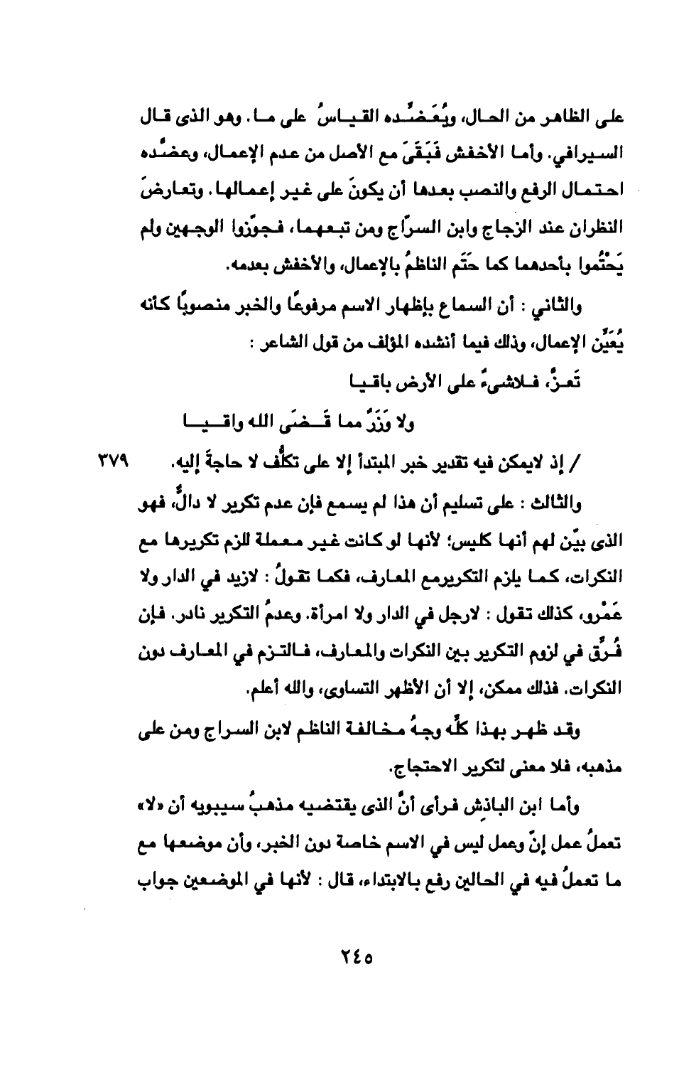 وقد ظهر بهذا كلّه وجهُ مخالفة الناظم لابن السراج ومن على مذهبه، فلا معنى لتكرير الاحتجاج.