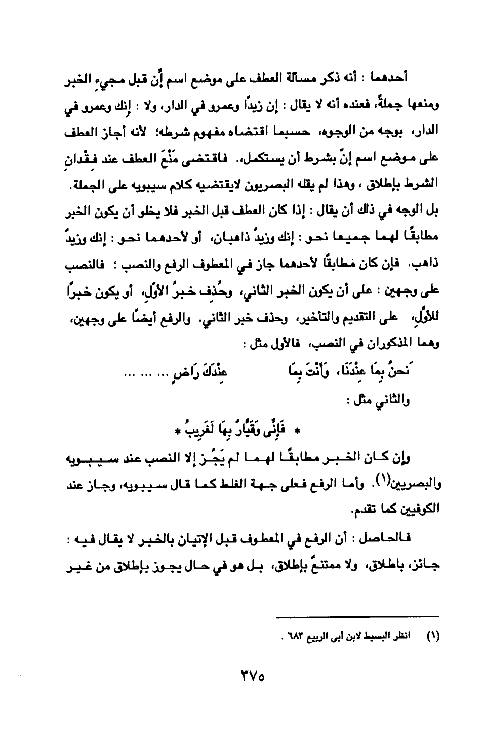 فالحاصل: أن الرفع في المعطوف قبل الإتيان بالخبر لا يقال فيه: جائز، باطلاق، ولا ممتنعٌ بإطلاق، بل هو في حال يجوز بإطلاق من غير